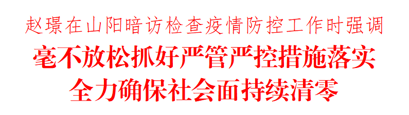 趙璟在暗訪檢查中強(qiáng)調(diào),山陽縣雖已實(shí)現(xiàn)社會(huì)面清零,但防反彈、防新增風(fēng)險(xiǎn)依然很大。要堅(jiān)定信心、增強(qiáng)定力,毫不松懈嚴(yán)抓嚴(yán)管,持續(xù)強(qiáng)化重點(diǎn)區(qū)域封控管控,把各項(xiàng)措施都做到位、做扎實(shí),落實(shí)到操作層面。要針對城中村、城鄉(xiāng)接合部等難點(diǎn)區(qū)域,充實(shí)人員力量,劃小網(wǎng)格單元,嚴(yán)守出入卡口,加強(qiáng)內(nèi)部管控,堅(jiān)決防止“外面嚴(yán)、里面竄”,真正把靜態(tài)管理落實(shí)到每個(gè)部位、每個(gè)角落。各級干部必須知責(zé)履責(zé)、堅(jiān)守陣地,轉(zhuǎn)變作風(fēng)、嚴(yán)防死守,耐心細(xì)致做好群眾工作,干群齊心筑牢嚴(yán)密防線,全力鞏固擴(kuò)大防控成果,盡快打贏疫情防控阻擊戰(zhàn)殲滅戰(zhàn)。(記者 李小龍)