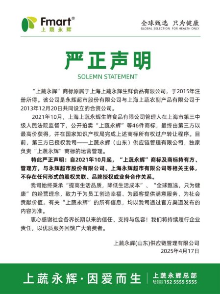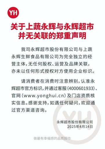 2025年4月,零售圈驚現“大瓜”——上蔬永輝和永輝超市紛紛公開聲明,果斷撇清關系,這波操作簡直把網友的CPU干燒了,這場 “分手戲碼” 比熱播劇還吸睛。