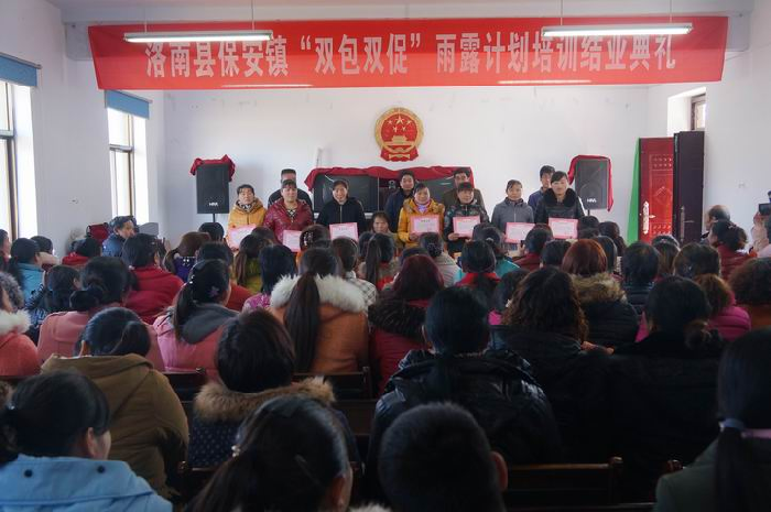 保安鎮(zhèn)為期1月的“雙包雙促”雨露計劃培訓(xùn)圓滿結(jié)束。11月26日在鎮(zhèn)機(jī)關(guān)四樓會議室舉行“雙包雙促”雨露計劃培訓(xùn)結(jié)業(yè)典禮儀式。商洛新潮學(xué)院院長、縣扶貧局及鎮(zhèn)相關(guān)領(lǐng)導(dǎo)出席結(jié)業(yè)典禮儀式。結(jié)業(yè)典禮上商洛新潮學(xué)院的院長對本次培訓(xùn)做了總結(jié),優(yōu)秀學(xué)員代表做了表態(tài)發(fā)言并為參加培訓(xùn)的學(xué)員頒發(fā)了結(jié)業(yè)證書。