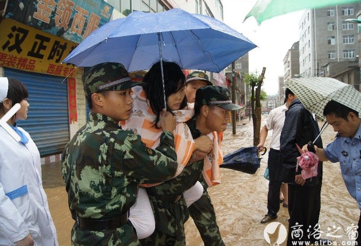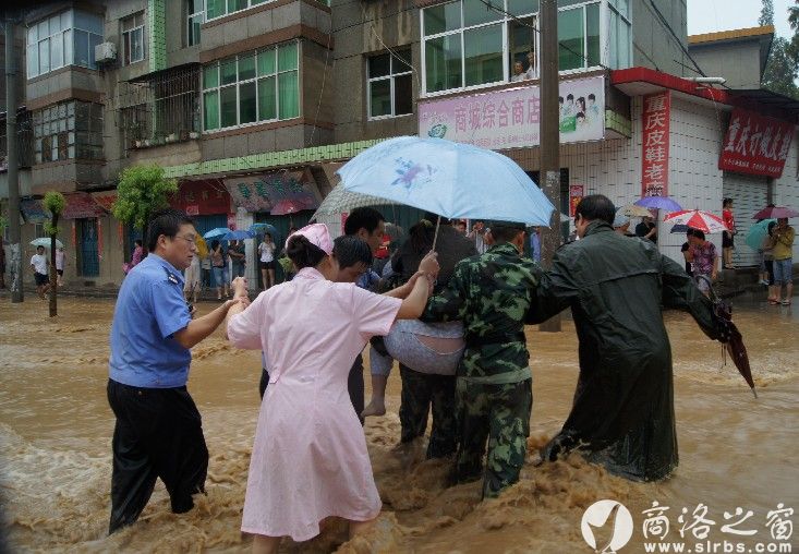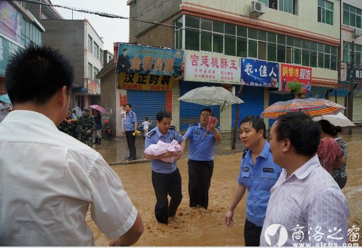 本網(wǎng)訊(周銀祥 王楓)7月23日晚8時(shí)至24日12時(shí),商南縣遭遇持續(xù)強(qiáng)降雨,河水猛漲,泥石流頻發(fā),平均降雨量80毫米,7月24日上午11時(shí)許,縣河洪水翻壩,洪水涌入縣城,濱河路、南大街、文化路、長(zhǎng)新路、東街等多條街道被淹,縣婦幼保健院也成了一片汪洋,猛漲的洪水翻過(guò)攔河大壩將100多名新生嬰兒和孕產(chǎn)婦圍困,情況萬(wàn)分危急??h委、縣政府按照防汛搶險(xiǎn)預(yù)案,由副縣長(zhǎng)、公安局長(zhǎng)趙黎軍帶隊(duì)的30多名抗洪搶險(xiǎn)突擊隊(duì)在第一時(shí)間趕到現(xiàn)場(chǎng),營(yíng)救工作全面展開(kāi)。