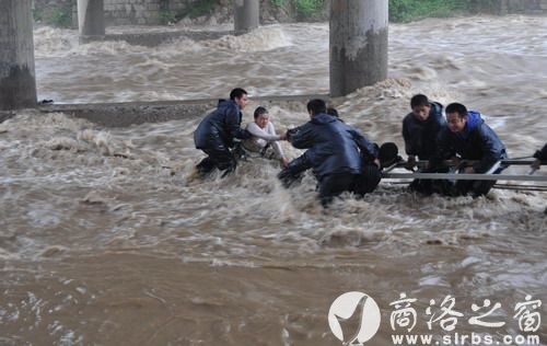 24日6時50分,柞水縣公安局110接到群眾報警:一女子被洪水圍困在柞水縣干佑大橋橋墩橫梁上,十分緊急,請求救援。險情就是命令,接警后,110迅速將警情下達(dá)到干佑派出所以及巡特警大隊。受令民警迅速趕往出事地點,只見一名女子趴在河中心橋墩橫梁上,橋墩四周全被淹沒,女子情緒激動,幾次險些跌落水中,而此時河水還在上漲,情況非常危急。由于沒有專業(yè)的救援工具,現(xiàn)場民警無法實施有效救援。公安局立即指令政委王瑤帶領(lǐng)機(jī)關(guān)值班領(lǐng)導(dǎo)和消防應(yīng)急救援大隊11名消防戰(zhàn)士、巡特警大隊10名民警,攜帶保險繩、長纜繩、伸縮梯等救援器材,火速趕到事發(fā)地開展?fàn)I救工作。干警們下到水中,在洪水中艱難前行,在距離女子十余米處將用于營救的伸縮梯一端搭到橋墩橫梁上,另一端由站在淺水區(qū)的多名民警雙手托住,舉在水面上。兩名消防戰(zhàn)士身系覽繩沿梯子爬到橋墩橫梁上,用長纜繩系住女子腰部,1名戰(zhàn)士護(hù)送女子從梯子往岸邊方向爬行,行進(jìn)約兩米時,伸縮梯滑落,婦女連同救援戰(zhàn)士落入洪水之中,周圍的群眾同時發(fā)出驚呼,淺水區(qū)救援人員奮不顧身的迅速牽拉纜繩,將落水女子和戰(zhàn)士拉到岸邊,營救人員迅速將該女子抬上岸邊,立即送縣人民醫(yī)院搶救。經(jīng)醫(yī)院檢查,該女子身體狀況良好,未受到損傷。民警一邊聯(lián)系其親屬,一邊為該女子找來干衣服,購買了新鞋襪,并安排女民警對其進(jìn)行照看。