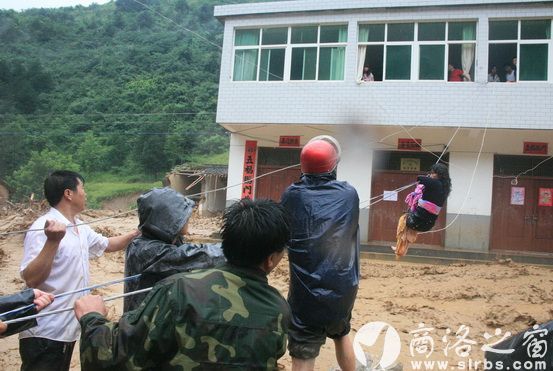 本網訊 (文/圖 董維剛)7月23日凌晨3時,一場突如其來的山洪襲擊山陽縣長溝鎮(zhèn)街道,17名村民和鎮(zhèn)屬單位職工從睡夢中被驚醒,倉皇逃到附近兩座樓房上避險。天亮后,小鎮(zhèn)上已是一片汪洋,被洪水吞噬的平房陸續(xù)坍塌,這兩座樓房也變成了“孤島”,隨時可能被沖垮,困在樓上的災民大聲呼救。清晨6點,三官殿村支書陳世寬和鎮(zhèn)上20多黨政干部一起投入搶險,經過3個多小時緊急救援,被困人員及時脫險。