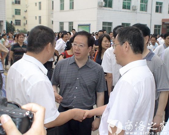 得知金絲峽國際大酒店老板捐款10萬元時,雷雨書記和陸邦柱縣長拉著老板的手,代表商南人民表示感謝