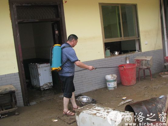 災(zāi)后防疫。圖為湘河鎮(zhèn)工作隊(duì)對(duì)受災(zāi)區(qū)噴灑消毒藥劑
