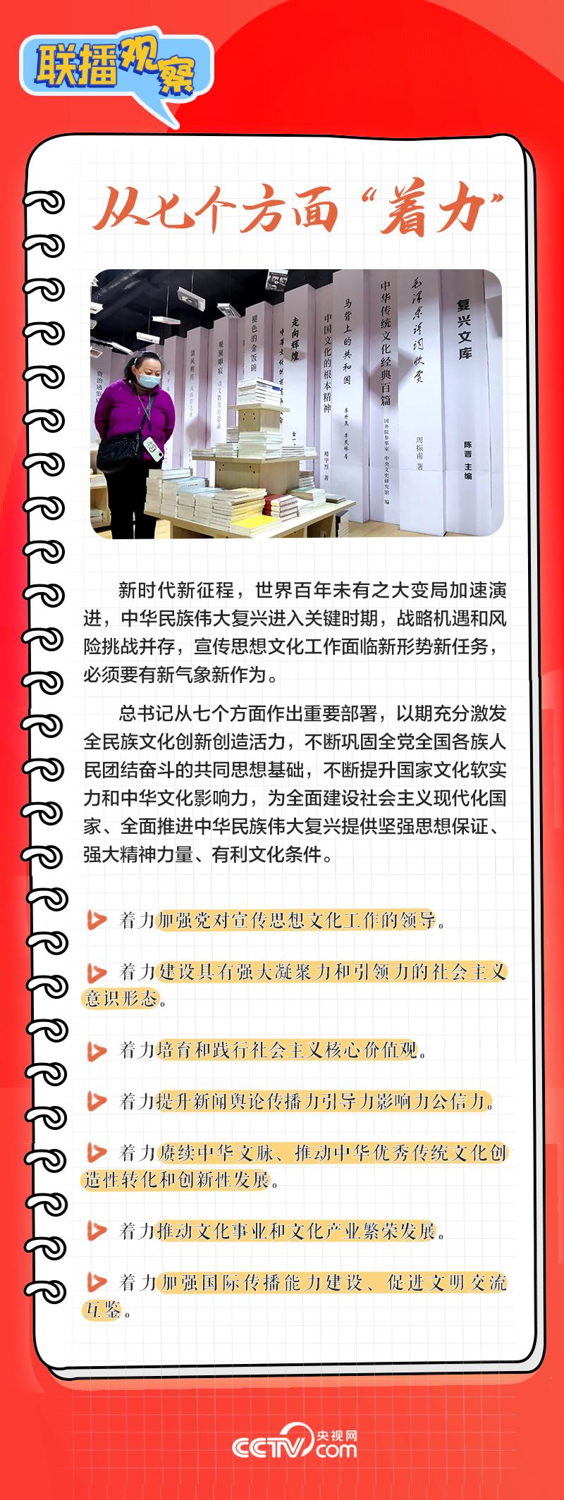 近日,習(xí)近平總書記對(duì)宣傳思想文化工作作出重要指示,提出“新的文化使命”“首要政治任務(wù)”等論斷,并要求從七個(gè)方面著力,為全面建設(shè)社會(huì)主義現(xiàn)代化國家、全面推進(jìn)中華民族偉大復(fù)興提供堅(jiān)強(qiáng)思想保證、強(qiáng)大精神力量、有利文化條件。