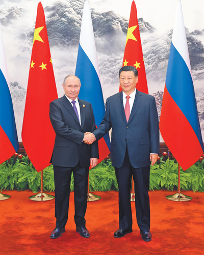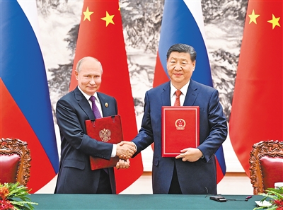 習(xí)近平強(qiáng)調(diào),中俄關(guān)系75年發(fā)展歷史得出的最重要結(jié)論,就是兩個(gè)相鄰的大國之間,必須始終弘揚(yáng)和平共處五項(xiàng)原則,相互尊重、平等互信、照顧彼此關(guān)切,真正為雙方的發(fā)展振興相互提供助力。這既是中俄兩國正確相處之道,也是21世紀(jì)大國關(guān)系應(yīng)該努力的方向。中俄關(guān)系有著深厚的歷史積淀和堅(jiān)實(shí)的民意基礎(chǔ),雙方要密切戰(zhàn)略協(xié)作和互利合作,堅(jiān)定地走自己的發(fā)展道路,堅(jiān)定維護(hù)國際公平正義。