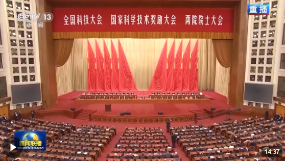 △全國(guó)科技大會(huì)、國(guó)家科學(xué)技術(shù)獎(jiǎng)勵(lì)大會(huì)、兩院院士大會(huì)在北京人民大會(huì)堂舉行。(總臺(tái)央視記者李增仁拍攝)