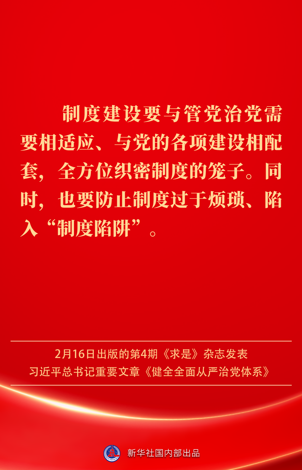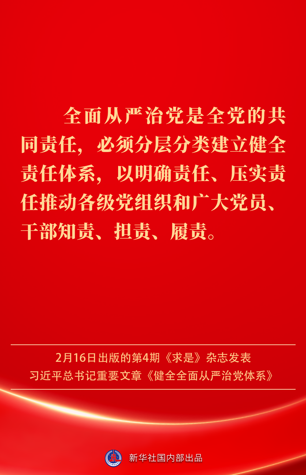 2月16日出版的第4期《求是》雜志發(fā)表習近平總書記重要文章《健全全面從嚴治黨體系》。如何進一步健全要素齊全、功能完備、科學規(guī)范、運行高效的全面從嚴治黨體系?習近平總書記闡明要旨——