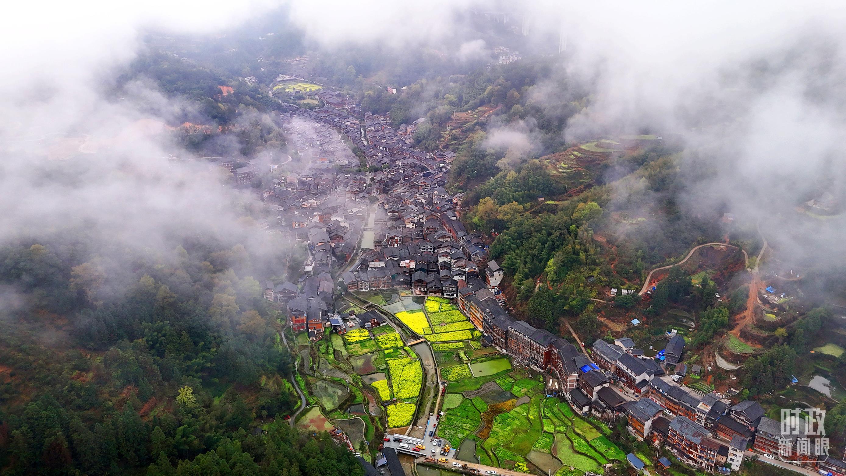 △春日的肇興侗寨,油菜花競(jìng)相綻放。(總臺(tái)央視記者程鋮拍攝)