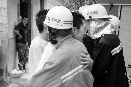 不僅是周華,很多學(xué)生都抱住消防戰(zhàn)士久久不愿松開(kāi)并連聲道謝。