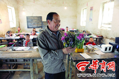 這所學(xué)校是復(fù)式班,共11名學(xué)生,為一、四兩個年級。下午上課后,第一個上場送花祝福李老師節(jié)日快樂的是班長王杰。“老師,我送您一朵野菊花,祝您節(jié)日快樂!”接下來,10個同學(xué)依次送花祝福。當(dāng)輪到一年級的王磊祝福時,光說了一句“老師,我送您一朵野花”就卡殼說不出祝福語了,引得滿堂大笑。