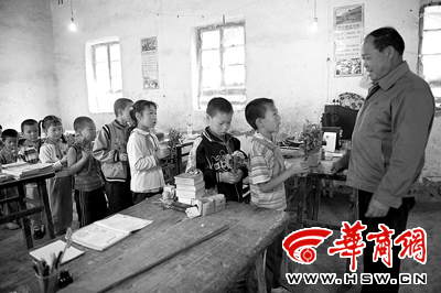 王杰是商洛市商州區(qū)麻街鎮(zhèn)五星村窯坡初小四年級班長。他說:“我們這里沒有商店,買賀卡要到山下走10里路,沒時間去,我就和同學(xué)王明晨商量采野花,采回來后再分給每個同學(xué),分別送給李老師,并說上一句祝福的話,不許學(xué)樣重復(fù)說。”