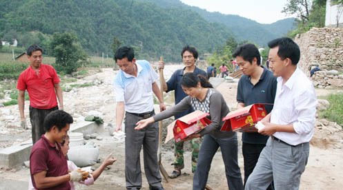 桃坪鄉(xiāng)今年7月23日遭受了特大暴雨洪水襲擊,接經(jīng)濟(jì)損失達(dá)9680萬(wàn)元。災(zāi)情發(fā)生后,當(dāng)?shù)攸h委、政府帶領(lǐng)群眾積極抗災(zāi)救災(zāi),進(jìn)行災(zāi)后重建。目前,整個(gè)災(zāi)后重建工作已經(jīng)進(jìn)入沖刺階段。為了確保重建工程保量,鄉(xiāng)黨委、政府決定中秋節(jié)黨員干部一律不放假,深入災(zāi)后恢復(fù)工程第一線,在工地上和農(nóng)民工一道過節(jié)、吃月餅,親手和群眾筑河堤、砌石煉,指揮電纜拉線和栽桿,共同度過一個(gè)愉快而有意義的中秋節(jié)。