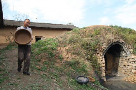 洛南縣景村鎮(zhèn)王山溝村,至今還留有兩口窯,郝悶長(zhǎng)是本村人,自18歲開始跟著父輩學(xué)習(xí)制陶,已經(jīng)30個(gè)年頭。