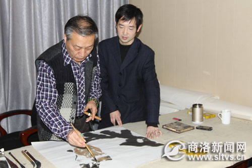 李苦寒在記者面前現(xiàn)場作畫