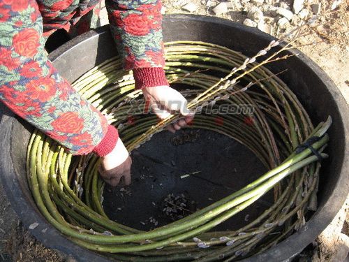 柳條要盤在一個圓形器具里