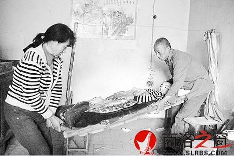 然而,說到后來,她淚眼濕潤地告訴記者:“雖然丈夫是個聾子,但是以前日子過得還是挺好的,誰知道后來兩個兒子都患病了,從此家里日子就沒法過了。”隨后,她將記者帶進了西邊的一個房間,只見里面靠近墻角上的一個床上躺著一個孩子,看上去有十一二歲的樣子。然而,周菊鳳卻說,孩子已經(jīng)25歲了,由于得了骨結核,已經(jīng)在床上躺了17年了,發(fā)育也不成熟,看上去還像個小孩。說完,她掀開了蓋在蓋在孩子身上的一條很薄的毯子,只見整個人顯得瘦骨嶙峋,腿腳都變了形,皮膚顯得煞白,由于長時間躺在床上,皮膚發(fā)癢,露出了被他自己抓的一條條手印。