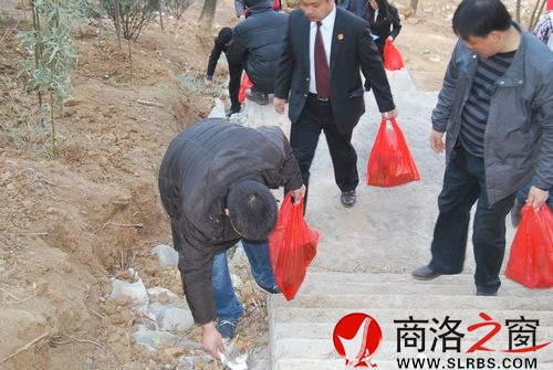 3月5日這天上午9點(diǎn),來自柞水縣團(tuán)縣委、環(huán)保局、衛(wèi)生局、公安局等單位干部和社會(huì)青年志愿者130余人,手提紅色塑料袋、火鉗等工具,對(duì)縣城的東坡公園及三道井景區(qū)的白色垃圾進(jìn)行了撿拾。通過大家近2個(gè)小時(shí)的努力,東坡公園及三道井景區(qū)的白色垃圾得以全部清理。 (毛淑霞 張曉鋒 攝)