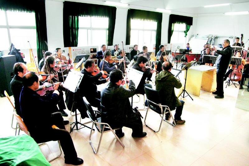 據(jù)林團長介紹,每周星期五,團員們都會拿著自己的樂器來這里,利用一天時間,聚在一起進行訓練。在排練現(xiàn)場,記者看到,大大小小的樂器有十多種,小提琴、大提琴、黑管、長笛、雙簧管、小號、長號、板胡、二胡等一應俱全。樂團主打以管弦樂為主,選擇的都是中外比較流行的經(jīng)典樂曲,目前他們主要排練的是大家熟知的曲目,如《春天的故事》《北京喜訊到邊寨》《白毛女交響組曲》《秦腔牌子曲》《鄉(xiāng)音》《好日子》等。