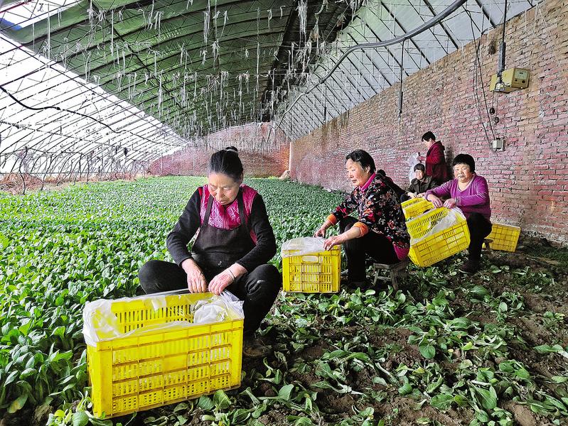 2月20日,在商州區(qū)金陵寺鎮(zhèn)竹沁園蔬菜生產(chǎn)加工專業(yè)合作社的大棚內(nèi),工人正在采收青菜。近年來(lái),金陵寺鎮(zhèn)大力扶持特色產(chǎn)業(yè),為市場(chǎng)供應(yīng)豐富的農(nóng)特產(chǎn)品,也為周邊群眾提供了大量的務(wù)工機(jī)會(huì)。(記者 肖云 攝)