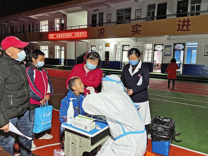 “嘴再張大一點點。”“別害怕,跟我讀‘啊——’。”21日晚上,氣溫已經(jīng)下降到5℃。在高新區(qū)某學(xué)校內(nèi),醫(yī)護人員耐心指導(dǎo)學(xué)生張開嘴巴進(jìn)行采樣。“采完的同學(xué)迅速離開,不要在這里逗留。”帶隊老師一遍又一遍向?qū)W生喊話,引導(dǎo)學(xué)生即采即走,不扎堆、不擁擠。