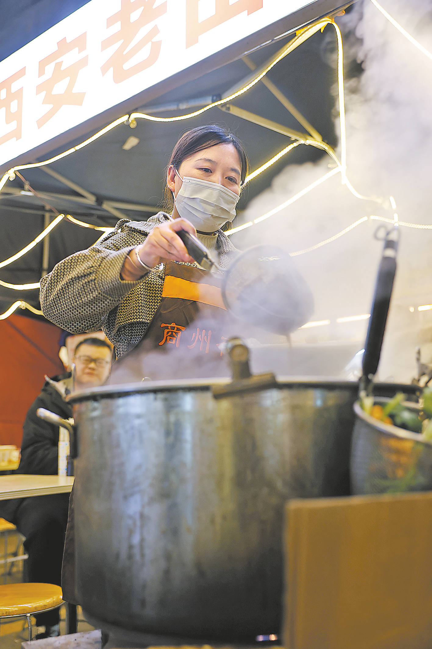 ?、抟雇淼纳讨菀故幸黄瑹艋鹜?,38歲的李佩在冒菜攤點前忙碌著。早上買菜、中午備菜、晚上出攤,是這三年來李佩的日常生活。日子雖然辛苦忙碌,但付出得到的回報也讓她很滿足。