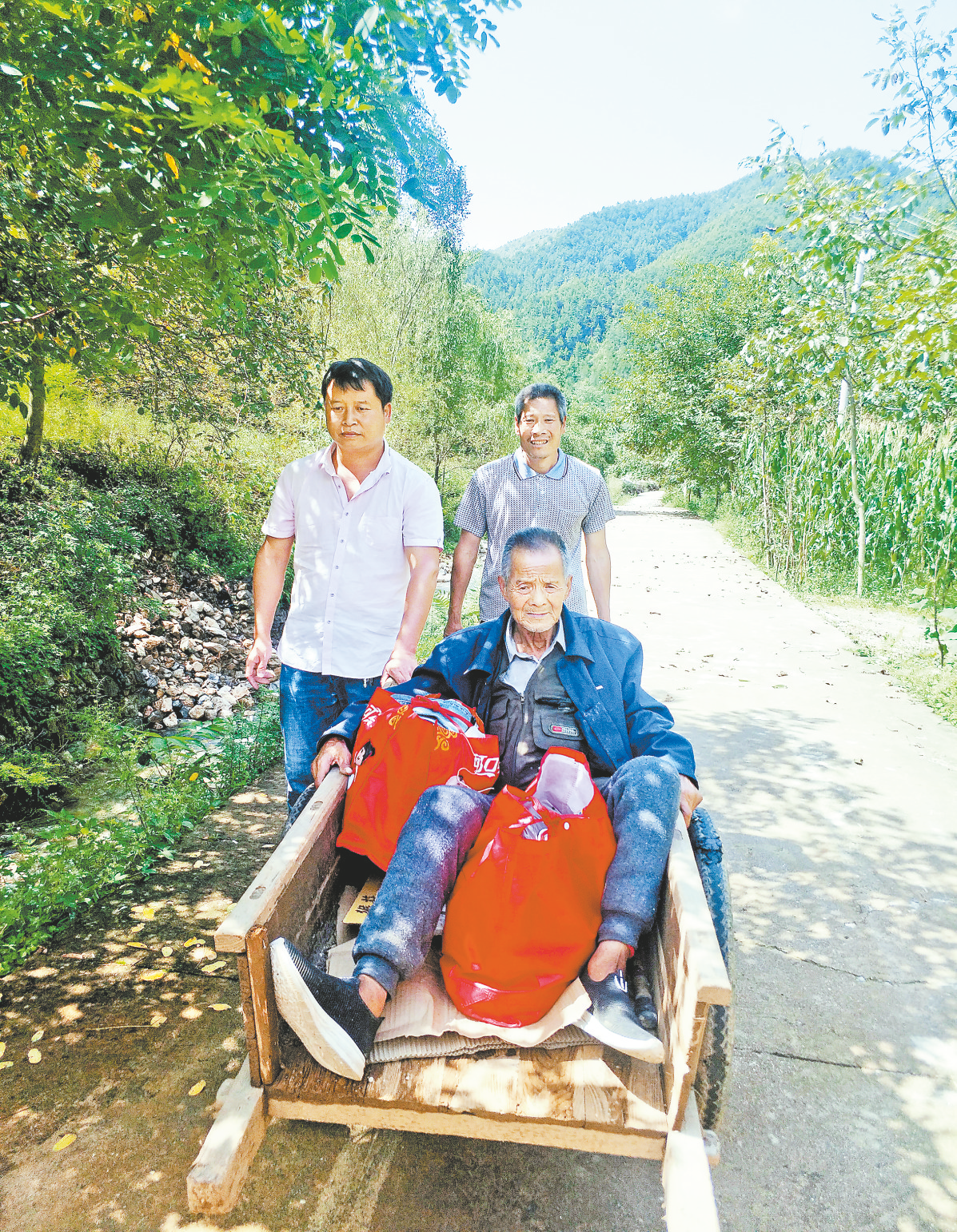 15組現(xiàn)已離世的老人孫房娃,當(dāng)時因胃癌晚期在商洛市中心醫(yī)院住院,洪災(zāi)期間家人接他回家,但便道只通到村委會,胡念軍同鄉(xiāng)親們一道抬著擔(dān)架走了2個小時將老人送到家里,以后定期上門隨訪查體,直到老人去世。