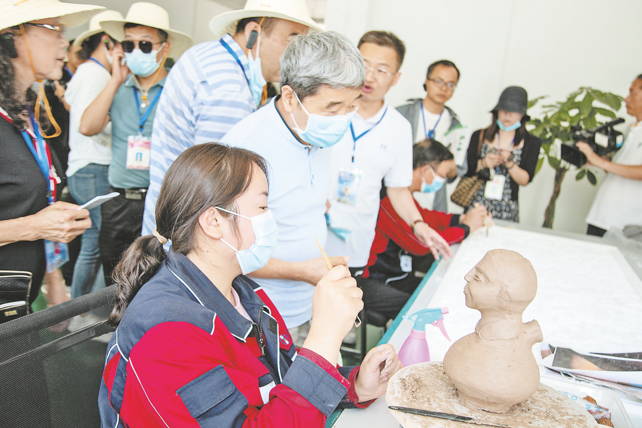采風(fēng)團(tuán)在洛南縣環(huán)亞源集團(tuán)了解文創(chuàng)產(chǎn)品制作工藝