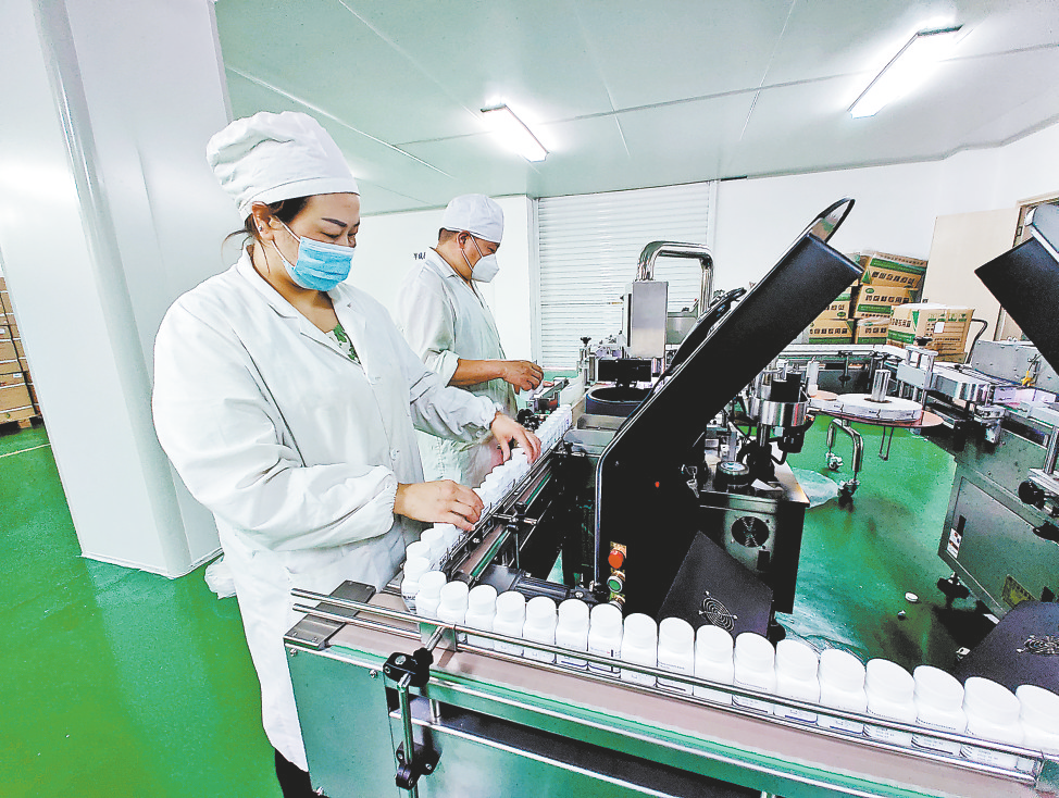 △在香菊集團(tuán)101片劑生產(chǎn)車間,工人正在忙碌。