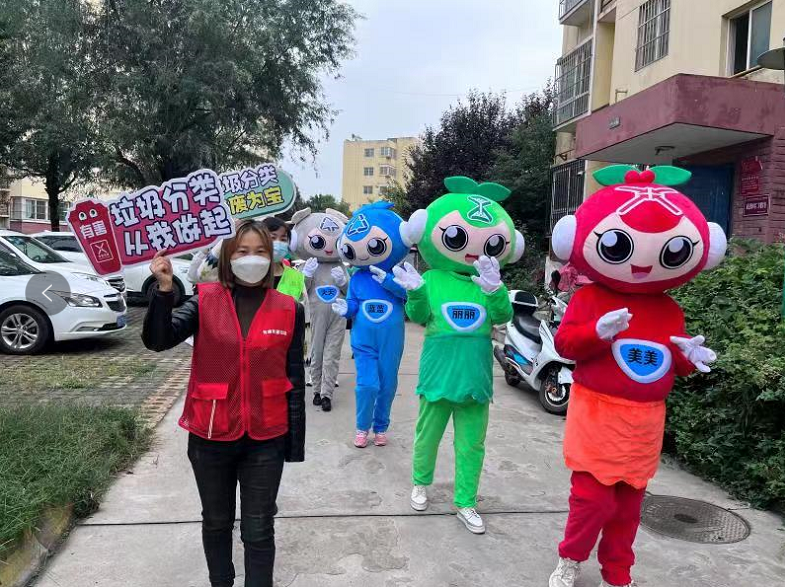 同時,活動中積極推廣應(yīng)用我市生活垃圾分類宣傳LOGO標(biāo)志和卡通形象。以商洛市生活垃圾分類卡通形象-環(huán)保小衛(wèi)士“美美、麗麗、藍(lán)藍(lán)、天天”為原型制作的四個可愛靈動的卡通布偶吸引了眾多居民圍觀。一些小朋友積極、踴躍參與,手舉垃圾分類宣傳牌和志愿者們一同開展宣傳。