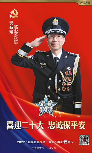 人物檔案樊有宏,男,漢族,陜西洛南人,1967年8月出生,大學(xué)學(xué)歷,中共黨員,1989年參加公安工作,現(xiàn)任洛南縣公安局刑偵大隊(duì)副大隊(duì)長(zhǎng)。從警33年來,樊有宏主勘各類刑事案件現(xiàn)場(chǎng)4000余起,利用刑事技術(shù)直接破獲各類刑事案件600余起,參與偵破重特大刑事案件100余件,利用刑事技術(shù)為破獲刑事案件提供證據(jù)1500余起。樊有宏先后50余次受到部省市表彰獎(jiǎng)勵(lì),被評(píng)為“全省公安機(jī)關(guān)刑事科學(xué)技術(shù)標(biāo)兵”、全省公安機(jī)關(guān)“汪勇式先進(jìn)個(gè)人”。2017年5月被評(píng)為全國(guó)優(yōu)秀人民警察,2022年5月被評(píng)為全國(guó)特級(jí)優(yōu)秀人民警察,2022年9月被評(píng)為全國(guó)“最美基層民警”。