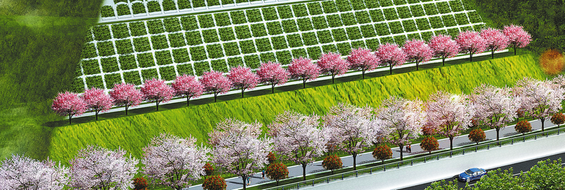環(huán)城西路二期道路項(xiàng)目南起馬蓮峪立交,北與北新街相交,全長2100米。綠化工程包括行道樹和部分中分帶綠化、景觀綠道綠化以及邊坡綠化。道路主線綠化總面積8329㎡,邊坡綠化總面積約3.55萬㎡。道路綠化以大喬木行道樹為背景林帶,點(diǎn)綴開花喬木,對(duì)沿線的擋墻護(hù)坡進(jìn)行立體綠化,體現(xiàn)生態(tài)理念。