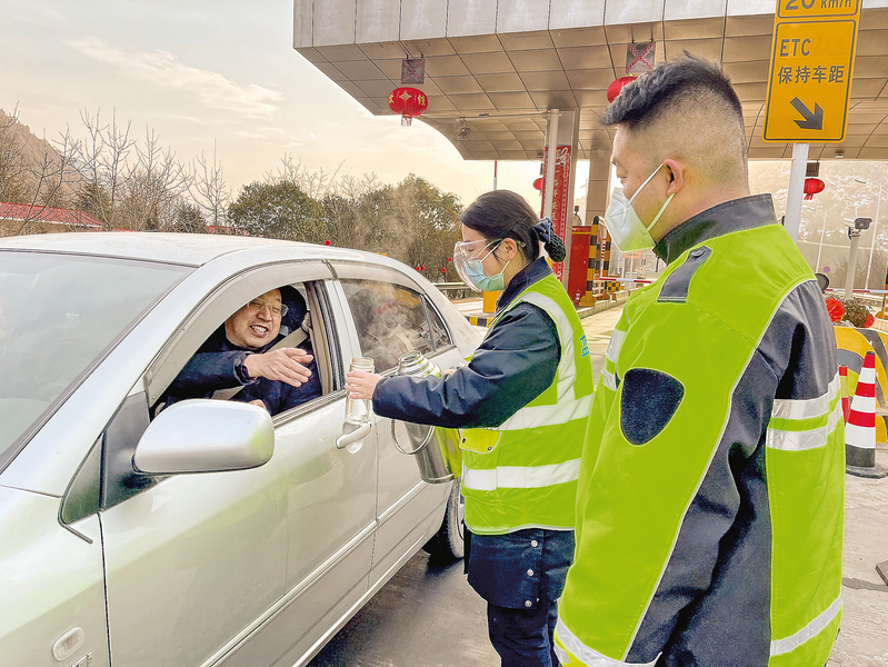 “師傅,我們給您盛杯熱水,天氣寒冷,出門注意保暖!”“謝謝你們,太細(xì)心了,新年快樂!”接到收費(fèi)員樊迪遞來的熱水,多名司機(jī)感動(dòng)不已。除了送水送飯,收費(fèi)站還長期為司乘人員提供旅游地圖、醫(yī)藥箱、工具箱等便民物資。