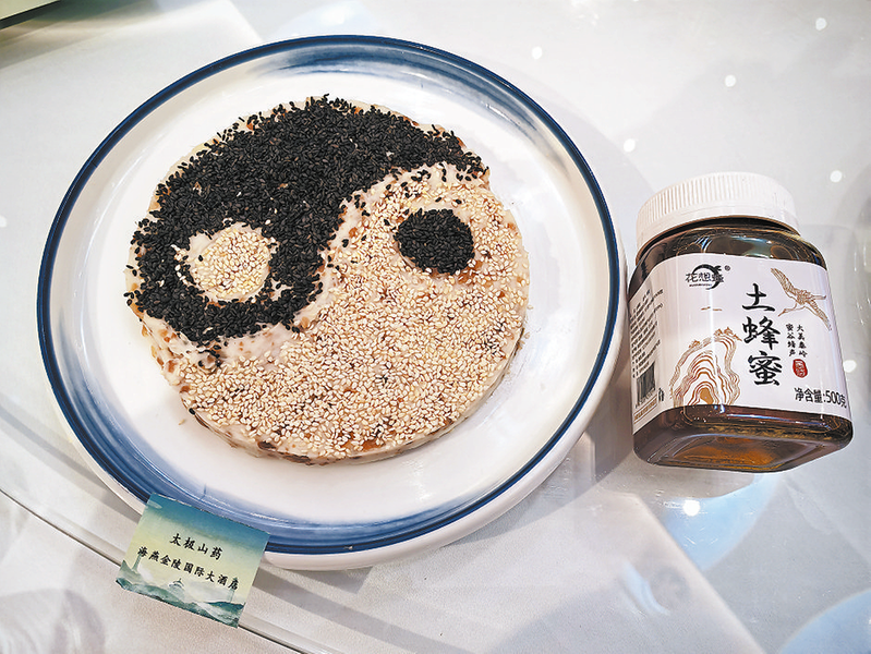 蜂蜜、山藥、芝麻做的太極圖案菜品。