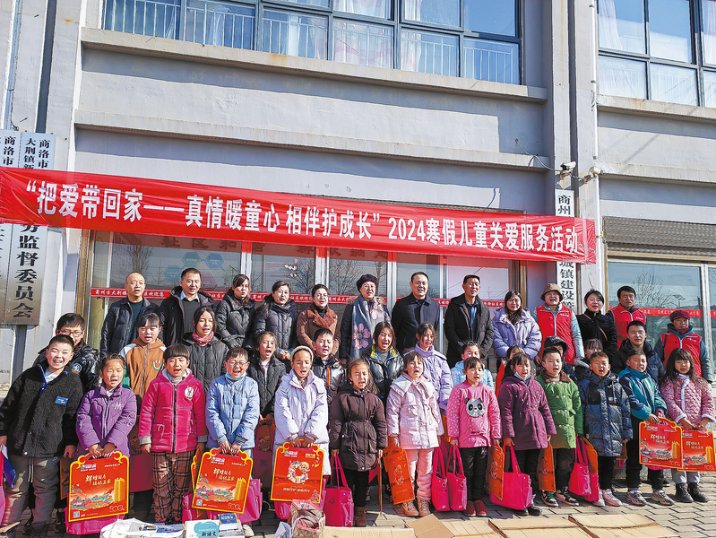 ?1月26日,商洛市婦聯(lián)聯(lián)合市巾幗志愿者協(xié)會在商州區(qū)大荊鎮(zhèn)新街社區(qū)開展“把愛帶回家、真情暖童心”關(guān)愛兒童活動,向30名留守兒童贈送書包、棉衣等價值近2萬元物品。 (本報記者 南 璽 攝)