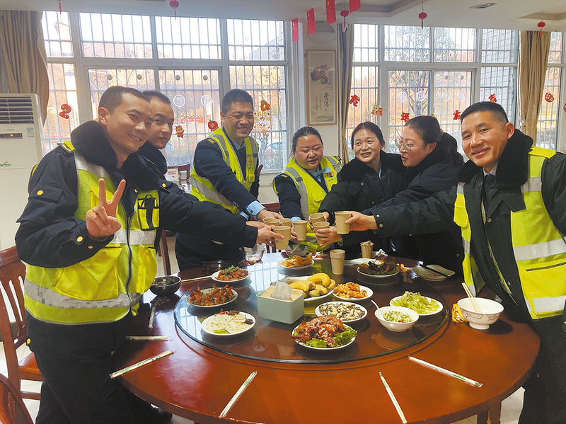 2月9日大年三十傍晚,伴隨著甲辰龍年春晚開場(chǎng)的倒計(jì)時(shí),陜西交控集團(tuán)西商分公司商州北管理所員工食堂內(nèi)歡聲笑語,40多名在崗職工同舉杯、慶新春,一頓別樣的年夜飯拉開了序幕。春節(jié)是萬家團(tuán)圓、辭舊迎新的喜慶日子,但他們依然堅(jiān)守在自己的崗位上,開展路產(chǎn)巡查、道路養(yǎng)護(hù)、收費(fèi)等工作,為司乘群眾的回家之路保駕護(hù)航。