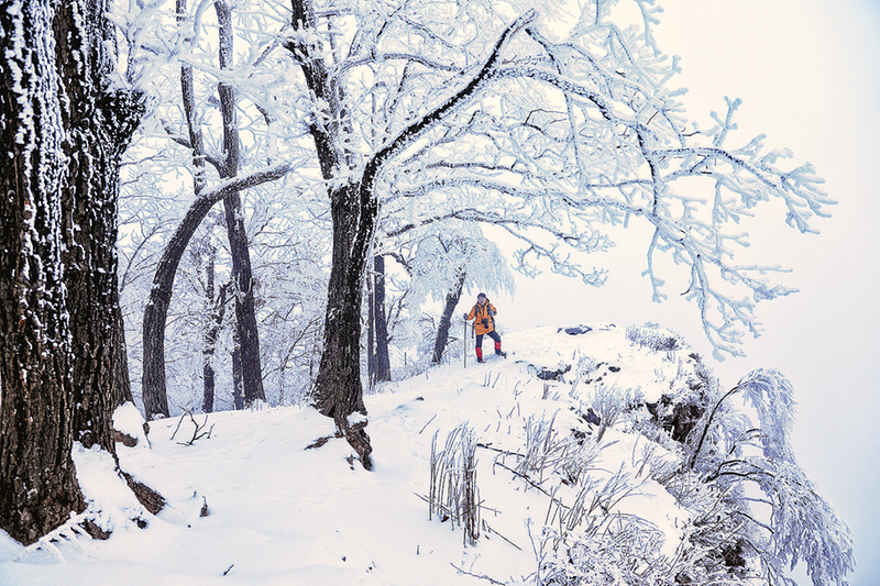 2月22日,洛南縣云蒙山上的雪后美景,吸引了登山愛好者前來觀賞。 (本報通訊員 陳亞民 攝)