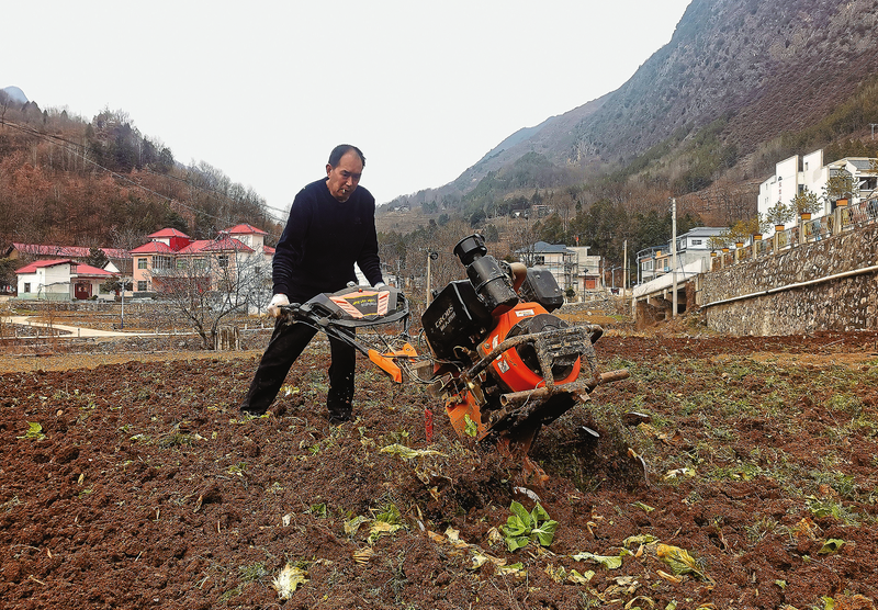 3月7日,山陽縣天竺山鎮(zhèn)三槐村村民朱財全正在用旋耕機耕地。據(jù)朱財全介紹,過去耕這塊地需要20名勞力辛苦1天,現(xiàn)在用機器只要2小時。 (本報通訊員 高軍軍 攝)