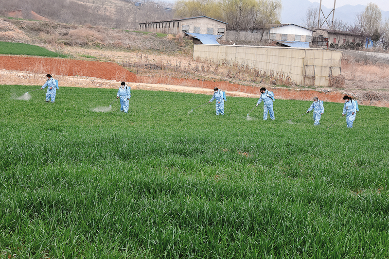 3月12日,丹鳳縣農(nóng)技中心、丹鳳縣老科教協(xié)會組織專業(yè)技術(shù)人員,在龍駒寨街道古城村古城嶺小麥集中種植示范區(qū)開展麥田化除防治示范活動。目前,全縣化除防治麥田超過1000畝。 (本報(bào)通訊員 劉春榮 攝)