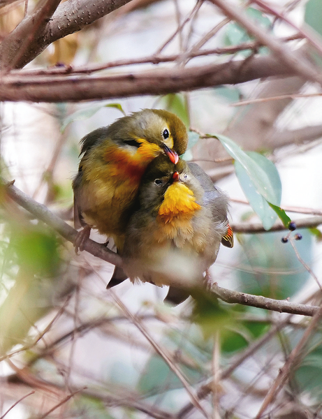 春日里,紅嘴相思鳥(niǎo)常成雙成對(duì),為即將到來(lái)的繁殖期做準(zhǔn)備。 (本報(bào)通訊員 李 海 攝)