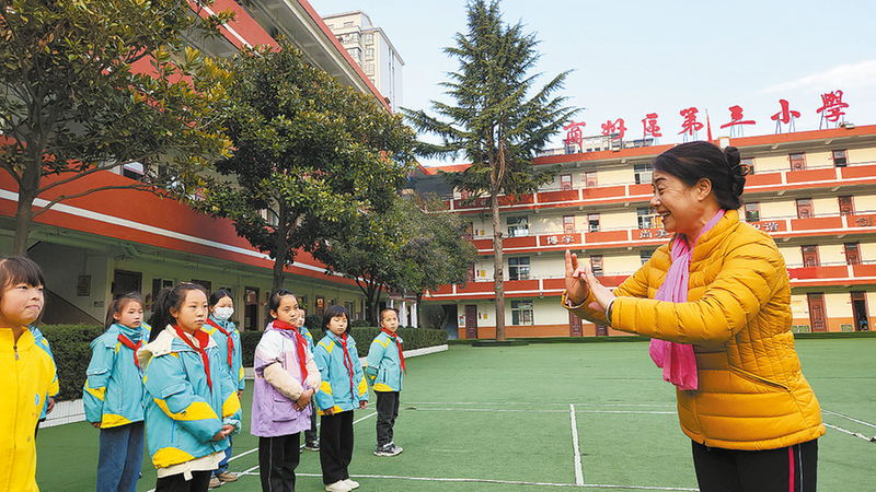 4月18日下午,在商州區(qū)第三小學(xué),一場(chǎng)花鼓戲表演正在進(jìn)行。商洛市民間文藝家協(xié)會(huì)主席郝忠鋒和丹曲藝術(shù)團(tuán)的田敏英老師正在對(duì)孩子們做“唱念做打”戲曲基本功的輔導(dǎo)。