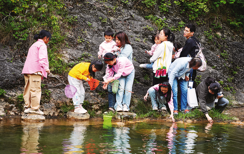 在這個(gè)假期,還有不少游客選擇輕松愜意的鄉(xiāng)村游,在僻靜的田園和村落之間,感受青山綠水,品味人間煙火。在商南縣清油河鎮(zhèn)后灣村,青山碧水、阡陌交通、鄉(xiāng)煙裊裊,景色旖旎,眾多游人在此聚集,或流連于數(shù)百畝的楊樹林中,或騎著自行車在蜿蜒的綠道上漫游,或帶領(lǐng)著孩子體驗(yàn)一場(chǎng)酣暢淋漓的CS真人對(duì)戰(zhàn)。“今年‘五一’,我們專門錯(cuò)開了熱門景區(qū),選擇了美麗鄉(xiāng)村游,來到后灣村帶孩子體驗(yàn)了打靶游戲,坐了山地越野摩托,還體驗(yàn)了一次真人CS,感覺非常過癮,孩子玩得特別開心。”來自西安的游客程鑫說。