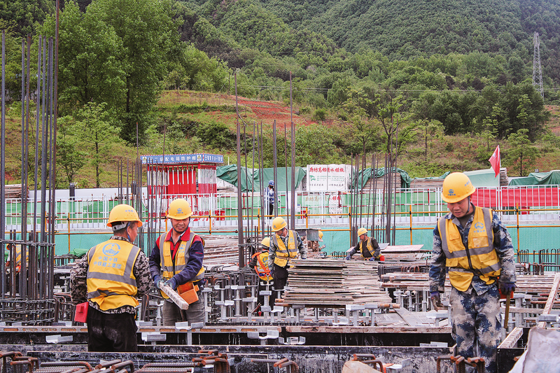 5月13日,西十高鐵陜西段XSZF-1標(biāo)段項(xiàng)目山陽(yáng)站,工人在忙碌進(jìn)行鋼筋綁扎。