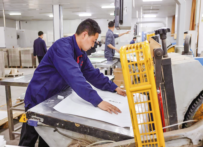 5月10日,位于商南縣的陜西柏倫包裝產(chǎn)業(yè)園內(nèi),工人在制作農(nóng)產(chǎn)品包裝盒。