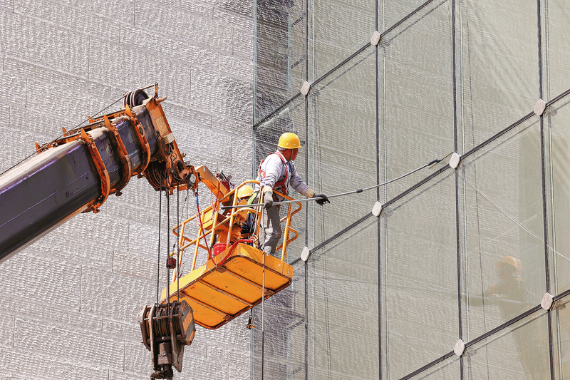 為了保證秦嶺博物館按時(shí)開館,施工方加快進(jìn)度趕工期。圖為5月14日工人開展高空作業(yè),清洗玻璃幕墻。