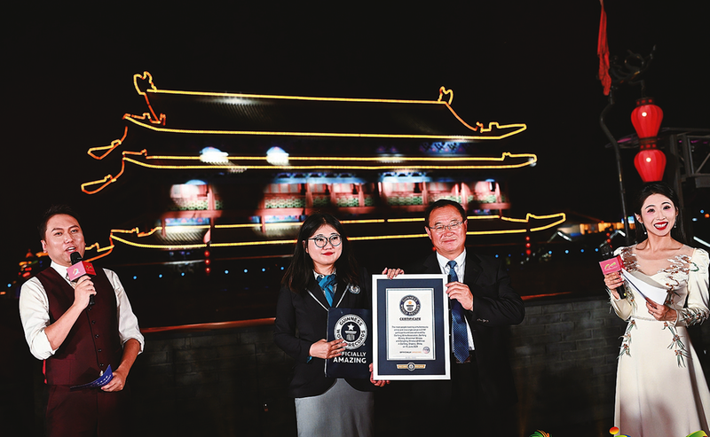 吉尼斯世界紀(jì)錄認(rèn)證官為丹鳳縣葡萄酒協(xié)會(huì)代表頒發(fā)“最多人線上線下同時(shí)祝酒”吉尼斯世界紀(jì)錄認(rèn)證證書