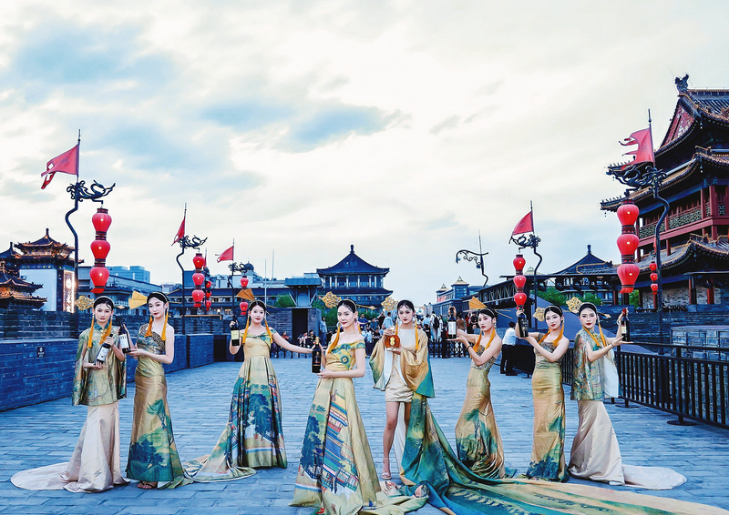 在城墻上,身著盛唐禮服的“侍女”,手持丹鳳紅酒,熱烈歡迎與會(huì)人員到來。在這里,不僅聽到古老的城墻在訴說著千年的滄桑巨變,也看到丹鳳紅酒的百年匠心傳承。這一刻,千年古城墻與丹鳳紅酒的激情碰撞,令國內(nèi)外賓朋驚艷不已。