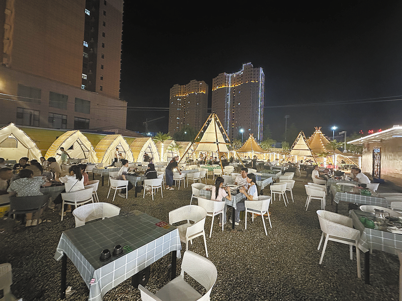 6月21日晚,人們在山陽縣“領頭羊營地烤場”品嘗美食,享受夏日閑暇時光。