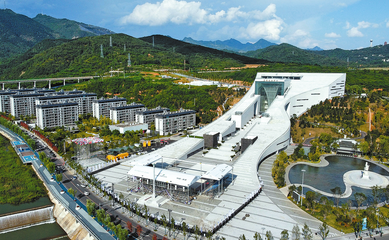 8月20日,秦嶺博物館西廣場(chǎng)上,參加2024國(guó)際排聯(lián)沙灘排球U19世界錦標(biāo)賽的國(guó)家和地區(qū)的旗幟迎風(fēng)飄揚(yáng),工作人員正加快推進(jìn)比賽場(chǎng)地搭建收尾和配套設(shè)施完善工作。比賽主場(chǎng)地與秦嶺博物館“山水玉璋”相互呼應(yīng),能夠同時(shí)容納1500名觀眾觀看比賽。