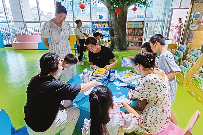 除了繪本講讀活動(dòng)火爆,趣味親子課堂也受到廣大家長(zhǎng)和孩子的喜愛(ài)。“立秋那天,我?guī)Ш⒆訁⒓恿藙?chuàng)意手工活動(dòng),活動(dòng)中,老師還帶孩子們學(xué)習(xí)了立秋這一節(jié)氣的相關(guān)知識(shí),之后教大家一起用黏土制作關(guān)于秋天的創(chuàng)意畫(huà),我和孩子互相合作,一起動(dòng)手,孩子可高興了。”家住江南小區(qū)的市民王旖說(shuō),這種高質(zhì)量的陪伴既讓孩子學(xué)習(xí)到了知識(shí),還增進(jìn)了和孩子之間的感情,她覺(jué)得這種活動(dòng)特別好,希望經(jīng)常開(kāi)展。
